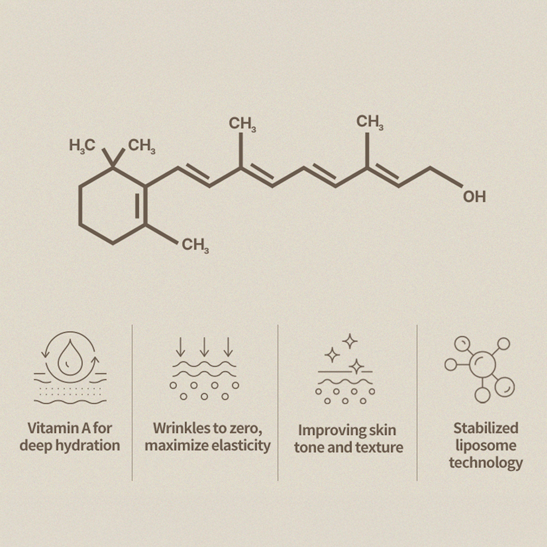 A next-gen pure Vitamin A with excellent stability and low irritation, it enhances skin elasticity, texture, and tone while delivering high efficacy with minimal sensitivity.